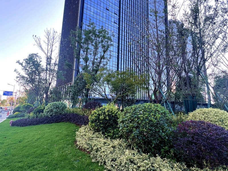 本项目整体景观层次分明,以现代简约的设计呈现纯净简约的空间意境,强调建筑和自然的相互结合,合理利用每一处空间,简约而不简单。主要追求高品质办公质量,打造灵动、绚丽、和谐、舒适的办公环境。整个大楼绿地倾情诠释了蜿蜒曲折的园路,姹紫嫣红的花卉,生意盎然的草坪,体现建筑与景观的完美融合,体现了“人文、生态、自然”的有机统一。